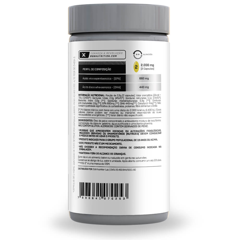 Cuidado completo para coração, cérebro e articulações. O Ômega 3 Dux fornece ácidos graxos essenciais de alta qualidade, ajudando na saúde cardiovascular, cerebral, articular e na redução de inflamações. Ideal para quem busca suplementação  premium, promovendo bem-estar e proteção diária.